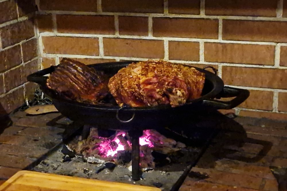 Für den Rückmarsch hatten sich Sylke und Andreas noch einen winzig kleinen Umweg außenrum um O'thal ausgedacht, so dass wir mit ordentlich Hunger bei Riedels in der alten Schmiede einfielen und das leckere Buffet mit Schweineschulter, Spareribs und allerlei Zutaten plünderten. Es soll dann wohl wieder weit nach Mitternacht geworden sein und die Riedelschen Hausmarken in rot und weiß schmolzen dahin wie Schnee in der Sonne...